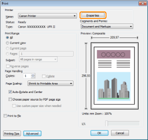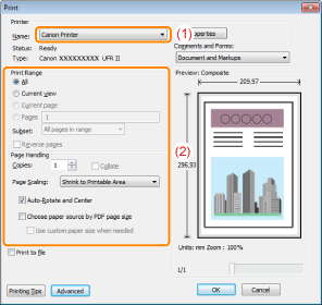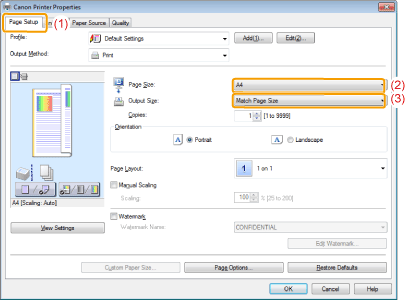 If the [Page Size] setting and [Output Size] setting are differentThe print is automatically reduced or enlarged to fit on the page.
