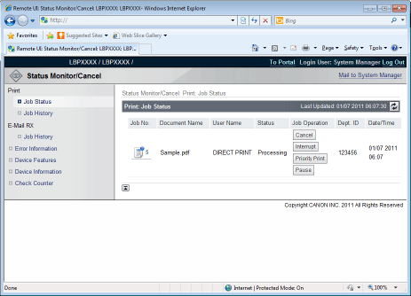 You can check the current printer status from the Remote UI portal page or the [Status Monitor/Cancel] page.