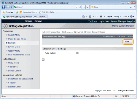 Checking the Network Ethernet Driver Screen from a Remote UI