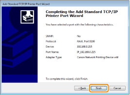 When using LPDWhen the printer driver is installed using the above method, RAW is specified as the print application to be used. If you want to use LPD, install the printer driver using the above procedure, and then change a port.