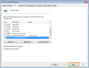 When deleting an unnecessary portSelect the unnecessary port on the [Ports] tab, and then click [Delete Port].