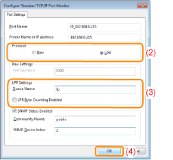 Enter the IP address or name* of the printer in [Printer Name or IP Address].