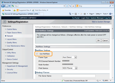 When the [Use NetWare] check box is clearedThe printer is not detected on the NetWare network.