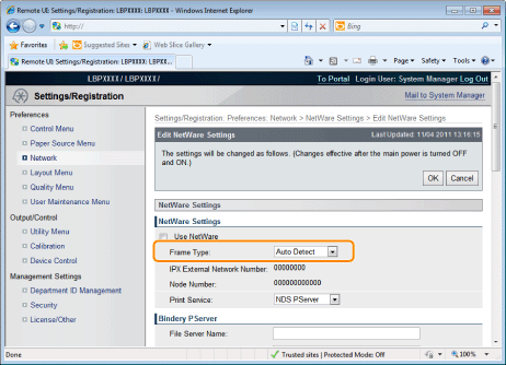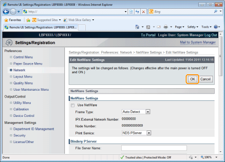 In [Printer Number], enter the same printer number as the one specified in "Configuring NetWare."