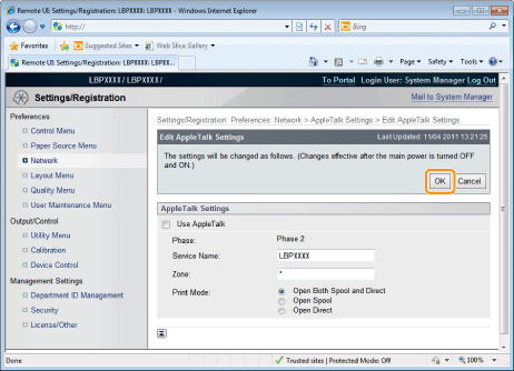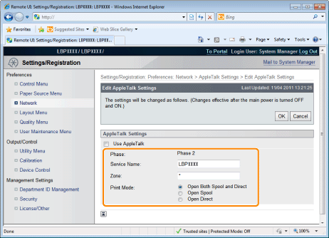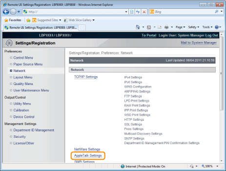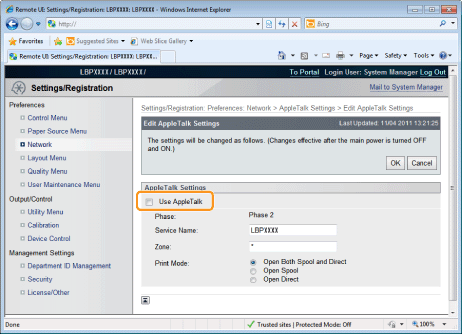 When the [Use AppleTalk] check box is clearedThe printer is not detected on the AppleTalk network.