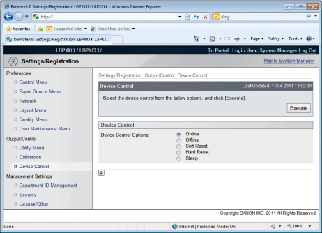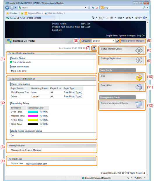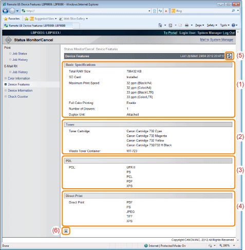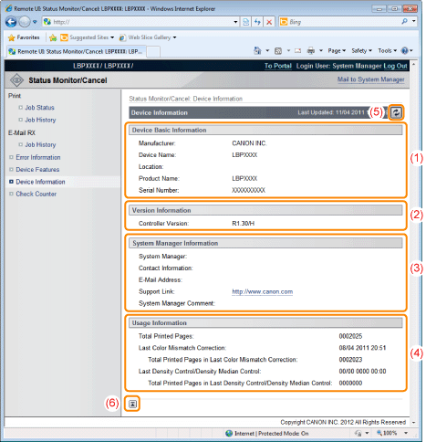 [Device Basic Information]The basic information about the printer is displayed.