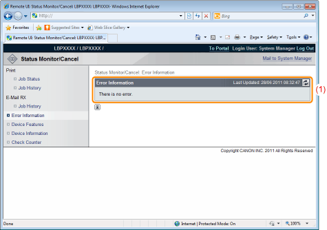 [Error Information] (Information)It displays status and solutions for the error information occurring in the printer.