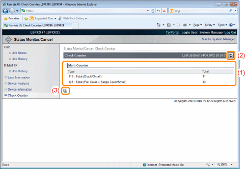 [Main Counter]The number of pages printed for each counter is displayed.