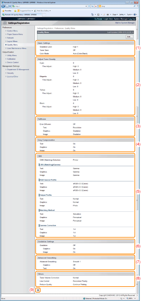 [Basic Settings]It displays the settings related to printing resolution and toner.