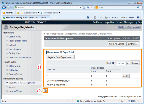 [Department ID Page Total]It displays the number of pages printed by each department.