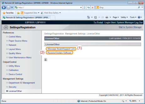 [Register/Update Software]It displays the pages that registering or updating software is performed.