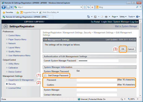 Select the [Set/Change Password] check box.