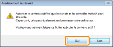 ![]() Si la boîte de dialogue [Contrôle de compte d'utilisateur] s'afficheCliquez sur [Oui] ou sur [Continuer].