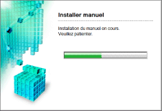 Patientez jusqu'à ce que l'écran suivant disparaisse. (L'installation du manuel électronique peut être assez longue.)