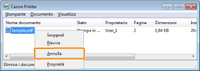 ] ( : Stato lavoro/Annulla) per annullare il processo. "Annullamento dal pannello di controllo della stampante" |