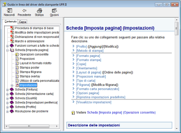 La guida in linea contiene informazioni aggiuntive sulle singole opzioni di stampa. Se l'e-Manual non contiene le informazioni necessarie, consultare la guida in linea.
