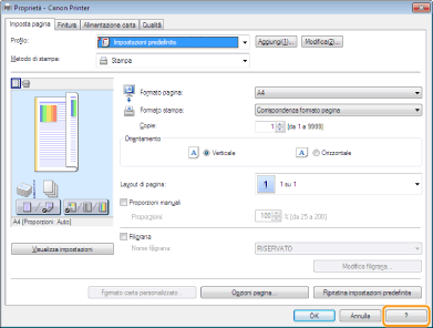È possibile visualizzare la guida in linea facendo clic su [?] nella schermata del driver della stampante.