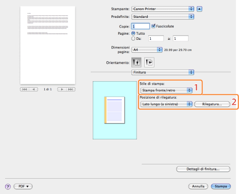Stampa su uno o entrambi i lati del foglio. L'impostazione predefinita per [Stile di stampa] è [Stampa fronte/retro].