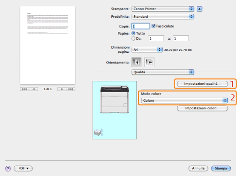 Consente di configurare le impostazioni correlate alla qualità di stampa.