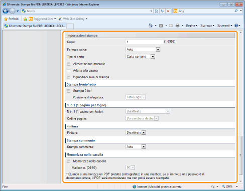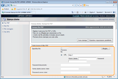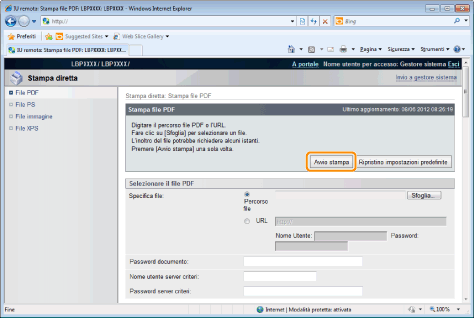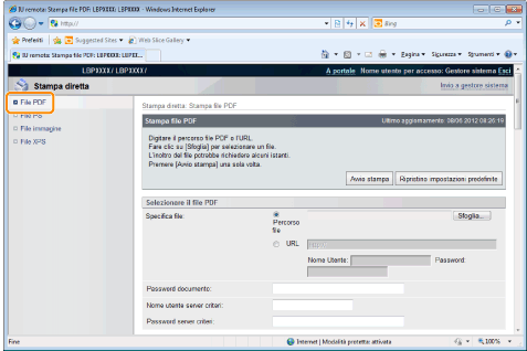 Quando si specifica un URL e si procede con la stampa, non è possibile eseguire un lavoro di stampa successivo finché non è terminato lo scaricamento del PDF o non è stata completata la connessione con il server Web.