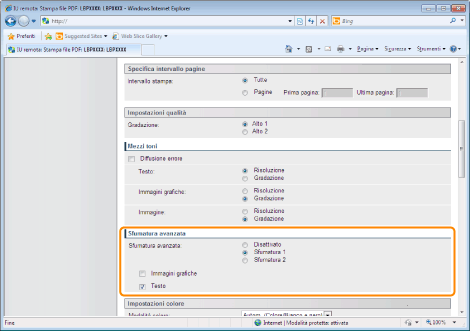 Le impostazioni [Grafica] e [Testo] sulla console della stampante sono appropriate solo quando l'opzione [Rifinitura avanzata] nel driver della stampante è impostata su [Impost. predefinite stampante].