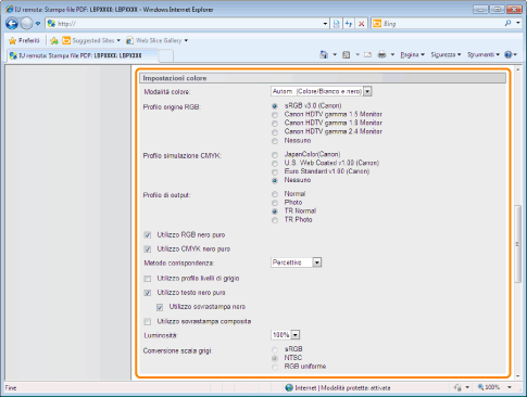 Se [Profilo origine RGB] è impostato come [Nessuno], l'impostazione per questa voce diventa non valida.