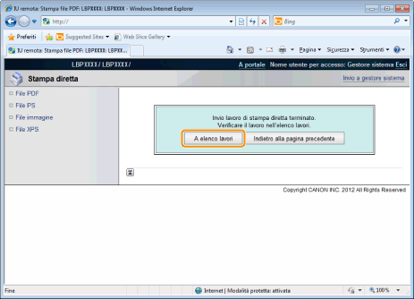 ![]() Premere [A elenco lavori] per controllare il lavoro che è stato inviato.