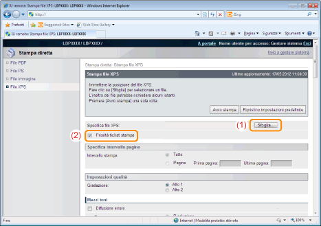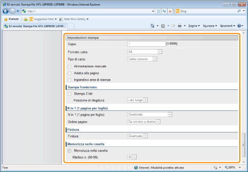 Se è selezionata la casella di controllo [Priorità ticket stampa], non è possibile impostare alcune voci tramite l'UI Remota. Per utilizzare tutte le impostazioni di stampa definite mediante l'UI Remota, togliere il segno di spunta da [Priorità ticket stampa].