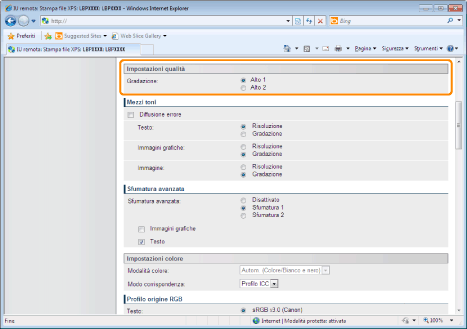 Specificare il processo di gradazione per la stampa dei dati. È consigliabile impostare [Alto 1] quando si stampano fotografie a livello di qualità standard e di impostare [Alto 2] quando si stampa a una qualità superiore.