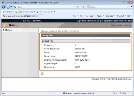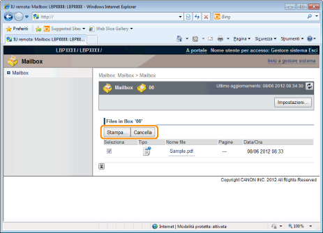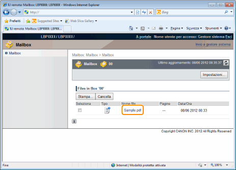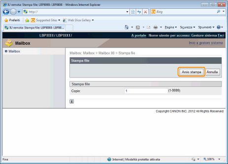 Se per la box è stata specificata una password, immettere la password e fare clic su [OK].