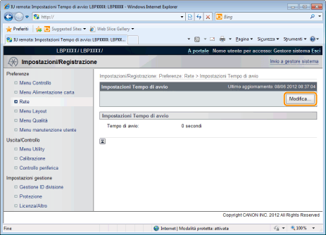 Modifica delle impostazioni tramite il browser (IU Remota)