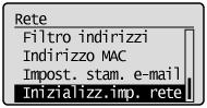 Selezionare [Inizializz.imp. rete] utilizzando [  ] e [  ], quindi premere [OK].
