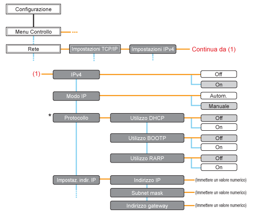 Selezionare [Indirizzo IP], [Subnet mask] e [Indirizzo gateway] utilizzando [
