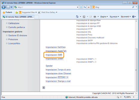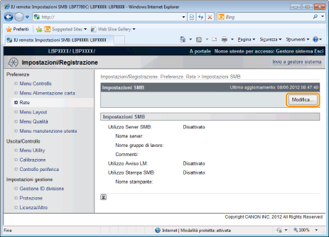 Nell'IU Remota è possibile specificare le impostazioni accedendo alla stampante in rete da un browser.