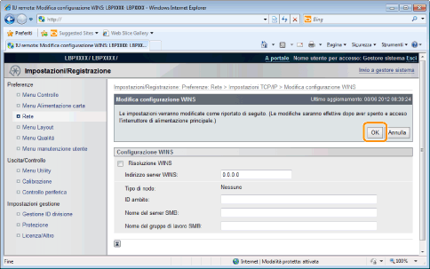 Inserire il nome del server WINS impostato nella procedura 7.
