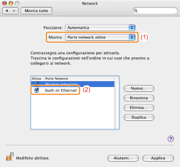 Selezionare [Porte network attive] e selezionare l'opzione [built-in Ethernet].