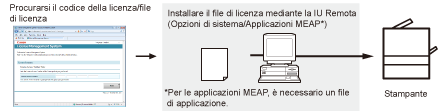 È possibile installare le opzioni di sistema/applicazioni MEAP utilizzando il file o la chiave di licenza ottenuta dal sistema di gestione delle licenze.