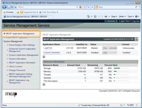 Dalla pagina principale di SMS, fare clic su [MEAP Application Management].