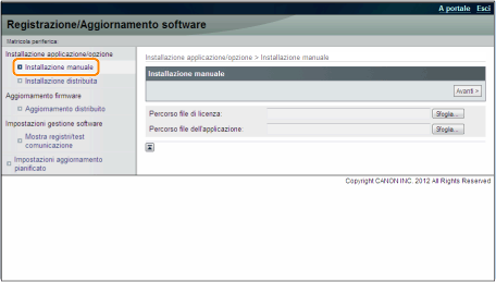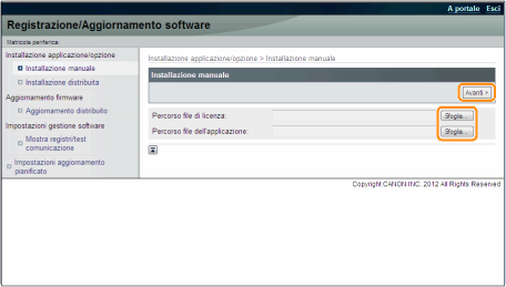 Fare clic su [Sfoglia...] → selezionare il file di licenza e il file dell'applicazione da installare → fare clic su [Avanti].