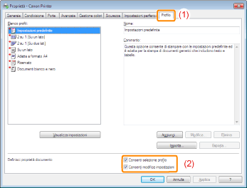 Selezionare le caselle di controllo [Consenti selezione profilo] e [Consenti modifica impostazioni].