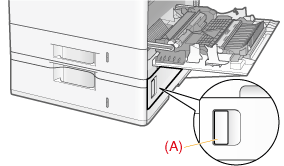 Tenendo la linguetta (A), aprire il coperchio destro del cassetto 2.