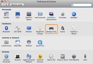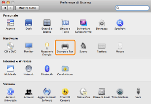 Aprire [Preferenze di Sistema] → fare clic su [Stampa e Fax].