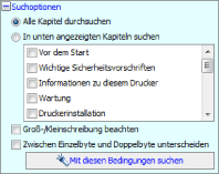![]() Die Suchoptionen können dazu verwendet werden das zu suchende Kapitel festzulegen, die Groß- und Kleinschreibung und ob zwischen Ein- und Zwei-Byte Zeichen zu unterscheiden ist.