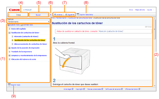 Haga clic para ver u ocultar el panel de contenido del capítulo o el panel de búsqueda.