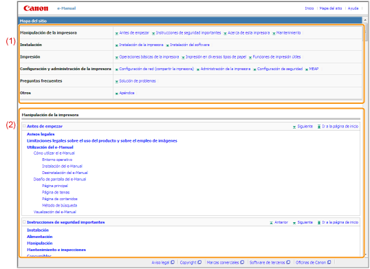 Muestra la totalidad de los capítulos y secciones del e-Manual. Haga clic en un elemento para ver el contenido.