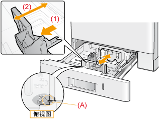 将 (A) 位置与要装入纸张的尺寸标记对齐。