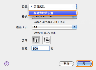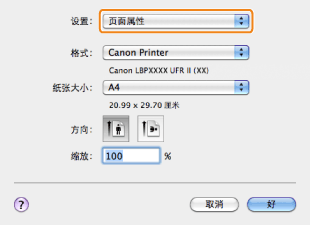 在 Mac OS X 10.5 和更高版本中,可能不显示 [页面设置] 对话框,具体取决于所使用的应用程序。