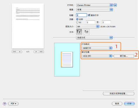 打印纸张的一面或两面。[打印样式] 的默认设置是 [双面打印]。