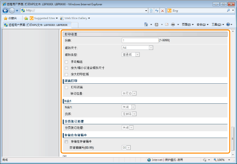 如果选中 [打印传票优先] 复选框,则无法通过远程用户界面设置某些项目。要使用通过远程用户界面设定的所有打印设置,请清除 [打印传票优先] 复选框。