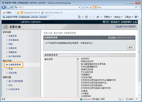 在 [设置/注册] 菜单 [输出/控制] 下单击 [应用程序菜单]。
